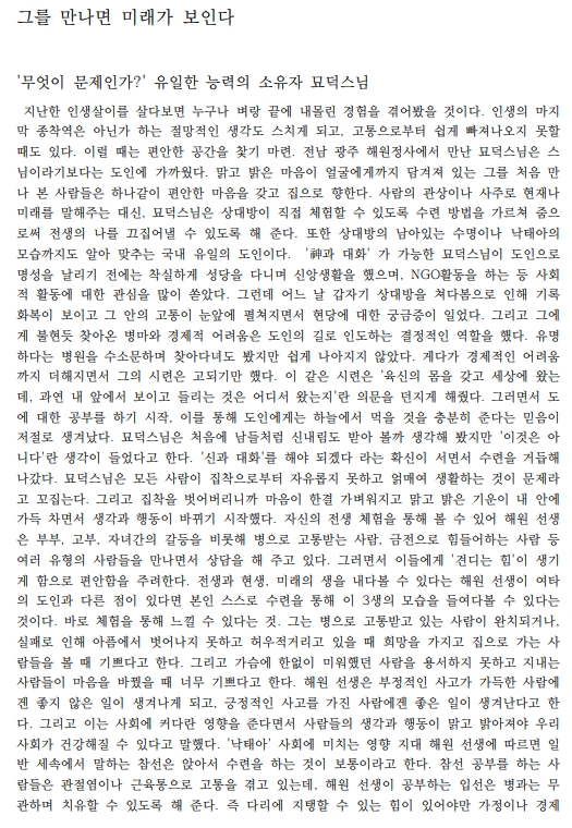 그를 만나면 미래가 보인다 - '무엇이 문제인가?' 유일한 능력의 소유자 묘덕스님 > 보도자료